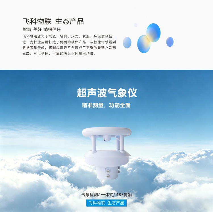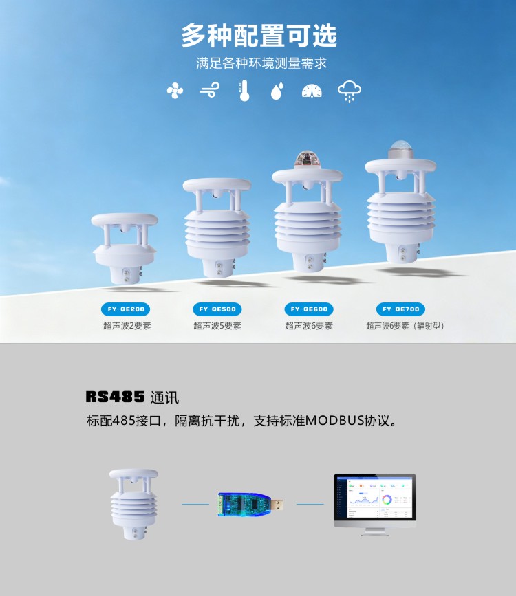 FY-QE200超声波风速风向传感器采用高频超声波来测量风速和风向,解决了传统机械式测风仪机械磨损的难题,没有移动部件,测量精度更高,性能更加可靠。超声波探头可以精确测量出风速和风向。传感器具有4个超声波探头。两个探头一组,进行相互收发。在无风的环境下,从每一个探头发出的超声波到达对面探头的时间都是一样的;当有风的情况下,风会影响超声波到达对面探头的时间,通过计算探头之间超声波传输时间差,可以计算出当时的风速和风向。可实现户外气象参数24小时连续在线监测,通过数字量通讯接口将气象参数一次性输出给用户。