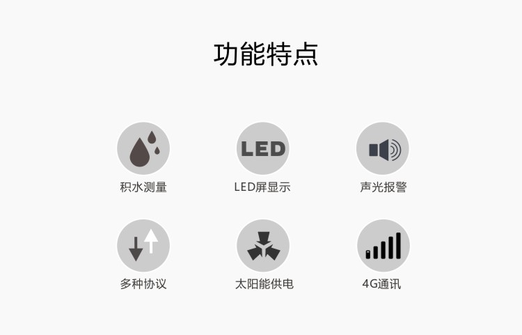 FY-WSC1000城市积水监测预警系统主要由采集终端、通讯模块、电源模块、信息显示屏等组成。该一体站在内涝发生时根据预先设定的参数采集内涝积水的准确数据信息,经过本地存储、数据处理以及协议封装等,由通讯模块将数据信息发送到监测中心,同时将检测到的道路水位信息更新至信息显示屏,提醒过往行人和车辆注意安全。