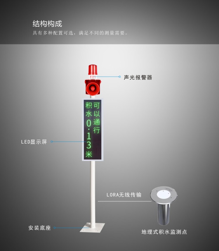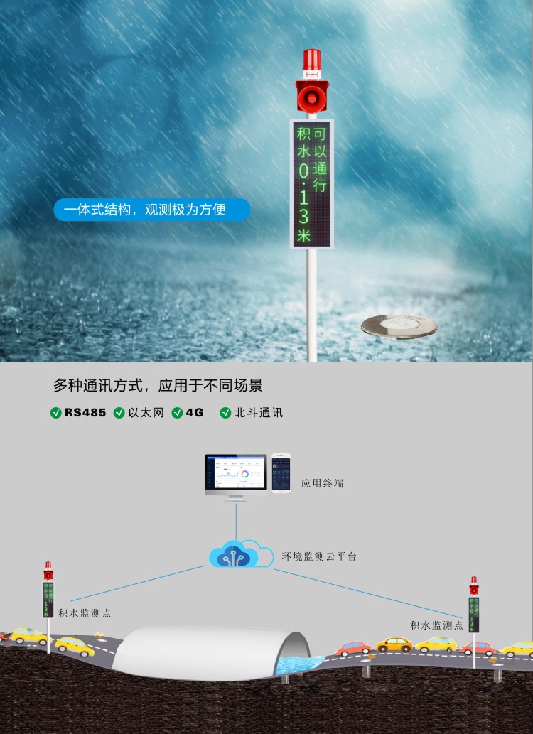 分布于城市中的隧道和立交桥等低洼路段在遭遇短时强降水天气时会由于排水不畅或者排水能力不足而形成深度积水,轻则阻塞交通,重则危害过往车辆和行人安全。市政、防汛、路政等政府相关管理部门亟需一套能够实时监测路面积水状况的城市防汛预警应急指挥系统。