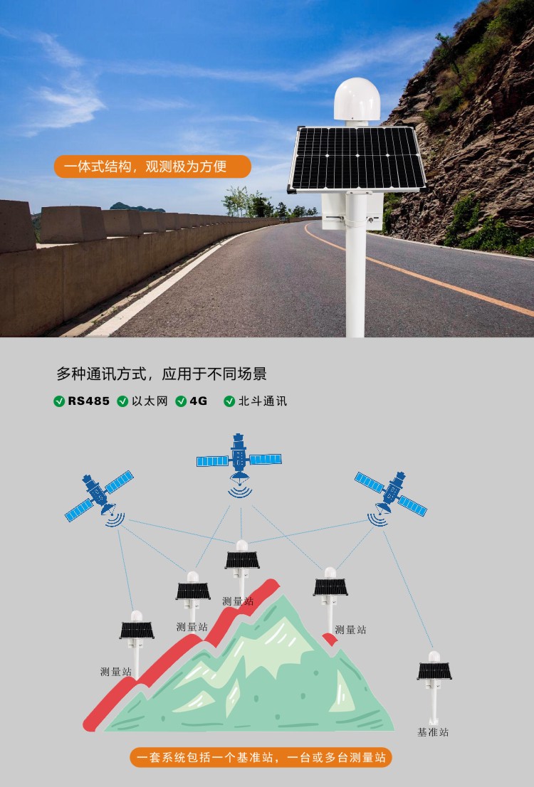 GNSS位移监测站采用综合多系统、多频率的卫星信号接收与差分定位技术,能够实现毫米级的高精度位移测量。