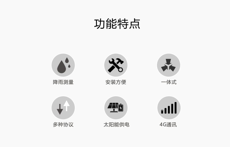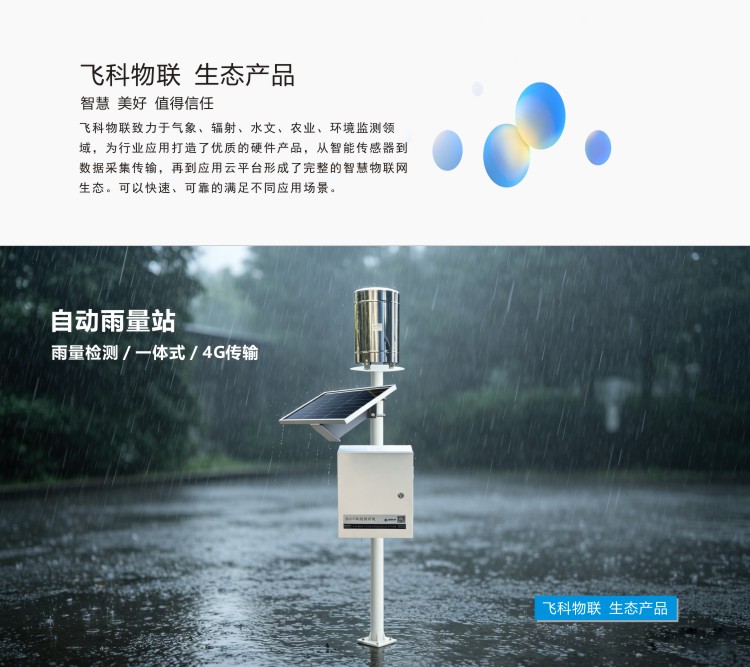 FY-WL100自动雨量站是用于测量雨量水文信息的自动观测仪器。自动雨量站由数据采集仪、雨量传感器、无线通讯模块、太阳能供电系统、云平台软件等部分构成。数据采集仪用于采集及记录雨量信息,并通过4G无线模块向云平台上报数据,系统采用一体式设计,安装方便。