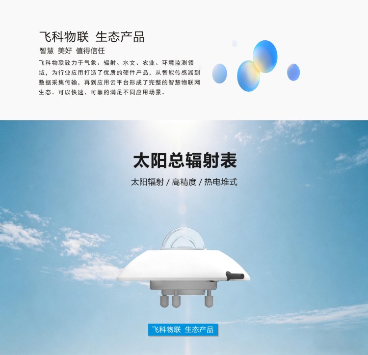 FY-TBQ总辐射表是一款测量接收地球平面上辐照度的一级辐射表。主要用来测量波长范围为0.3~3微米的太阳总辐射。如水平向下放置可测量反射辐射,加散射遮光环可测量散射辐射。本辐射表可广泛应用于气象探测、大气环境监测、气候观测、太阳能利用、农业、建筑物理研究等太阳辐射能量的测量。