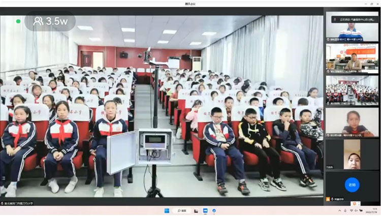 线上云互动环节,来自全国各地的同学踊跃举手发言,与气象专家互动。气象小组现场气象站操作展示,娴熟的技能,赢得了大家的掌声。同学们不仅学习了更多气象知识,也增长了更多对外来世界的认识。