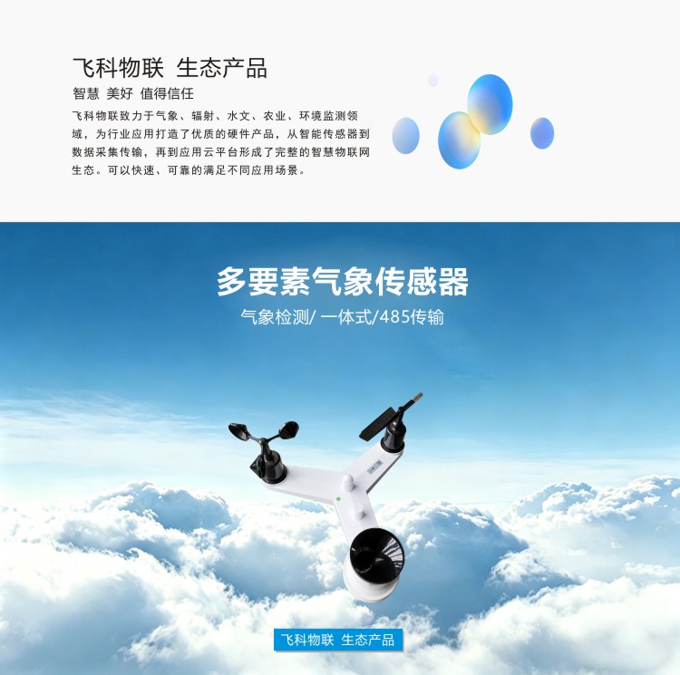 FY-QG系列一体式多要素传感器,可对风速、风向、温度、湿度、气压、雨量、光照、紫外、辐射、PM2.5、PM10、噪声等进行同步测量。采用进口传感元件作为感应部件,具有测量精度高、稳定性好等特点,传感器采用先进的电路集成模块,可根据用户的不同需求输出RS232、RS485、4G等通讯方式传输。仪器体积小巧,安装方便且便携,性能可靠;可广泛应用于气象观测、环境控制、农业、工厂等诸多领域。