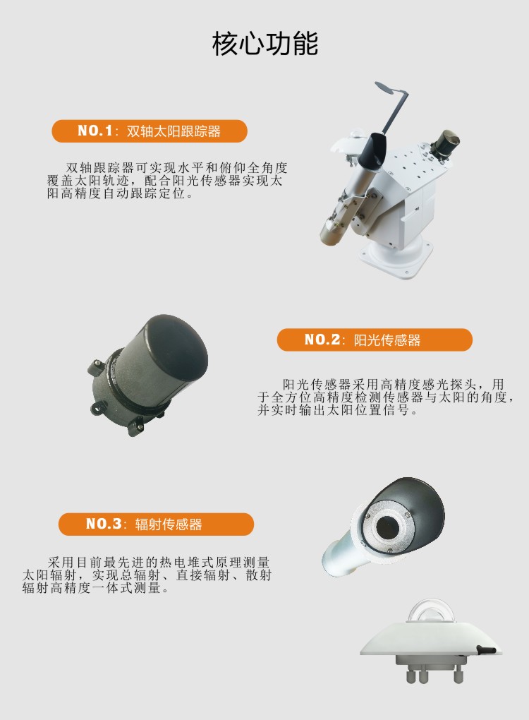 ●一体式测量太阳总辐射,直接辐射,散射辐射等;