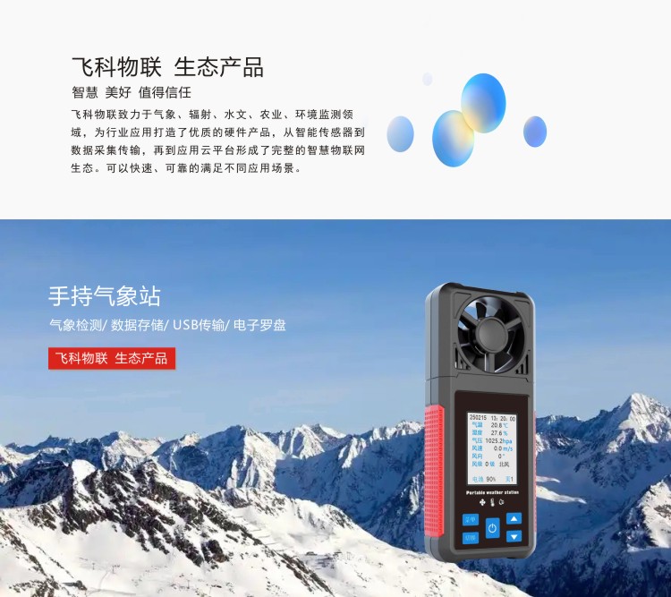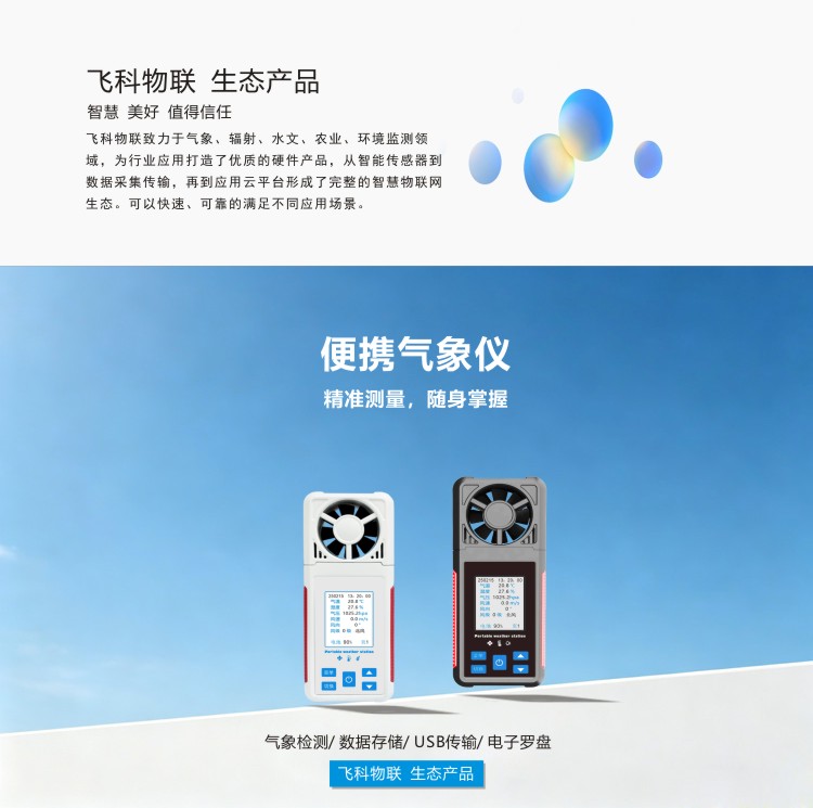 FY-Q8袖珍手持气象站是一款携带方便,操作简单,集多项气象要素于一体的可移动式气象观测仪器。系统采用精密传感器及智能芯片,用于测量风速,风向、温度,湿度,露点,大气压力,BF 薄福,风寒指数,海拔高度、光照、紫外、跑道温度等数据,并可扩展GPS定位功能。内置大容量FLASH存储芯片可存储至少一年的气象数据;通用USB通讯接口,使用配套的USB线缆即可将数据下载到电脑,方便用户对气象数据的进一步处理分析。本仪器可用于农林、环保、海洋、科学考察等领域。