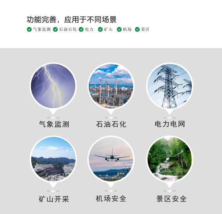 FY-TL300雷电预警系统是一款在线式雷电监测预警系统,用于预防和防范雷电灾害可能造成的损失。系统基于基于电荷感应原理,采用大气电场探测技术研制,无电机等易磨损件,具有体积小、功耗低、可靠性高、易于集成等突出优点。雷电预警系统预警准确、便于组网、安装方便,适用于航天国防、气象、石油石化、电网等领域。