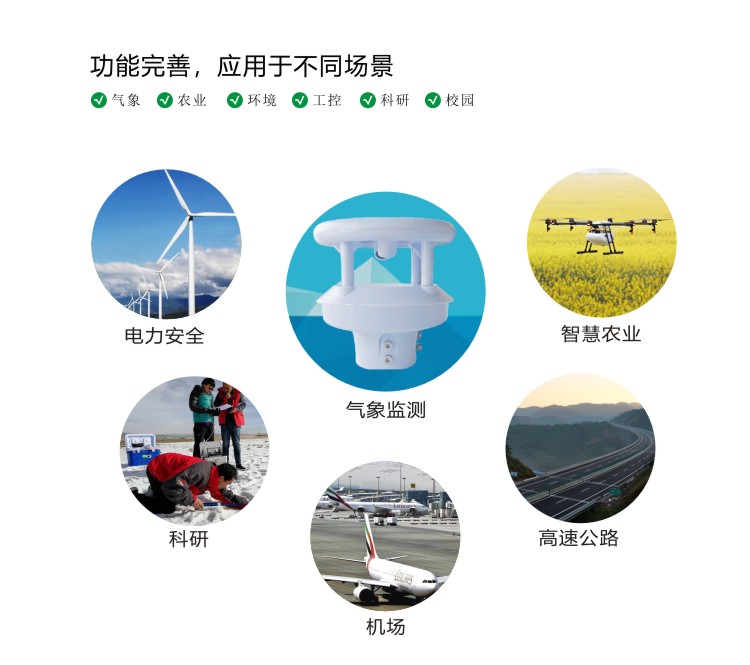 FY-QE200超声波风速风向传感器采用高频超声波来测量风速和风向,解决了传统机械式测风仪机械磨损的难题,没有移动部件,测量精度更高,性能更加可靠。超声波探头可以精确测量出风速和风向。传感器具有4个超声波探头。两个探头一组,进行相互收发。在无风的环境下,从每一个探头发出的超声波到达对面探头的时间都是一样的;当有风的情况下,风会影响超声波到达对面探头的时间,通过计算探头之间超声波传输时间差,可以计算出当时的风速和风向。可实现户外气象参数24小时连续在线监测,通过数字量通讯接口将气象参数一次性输出给用户。
