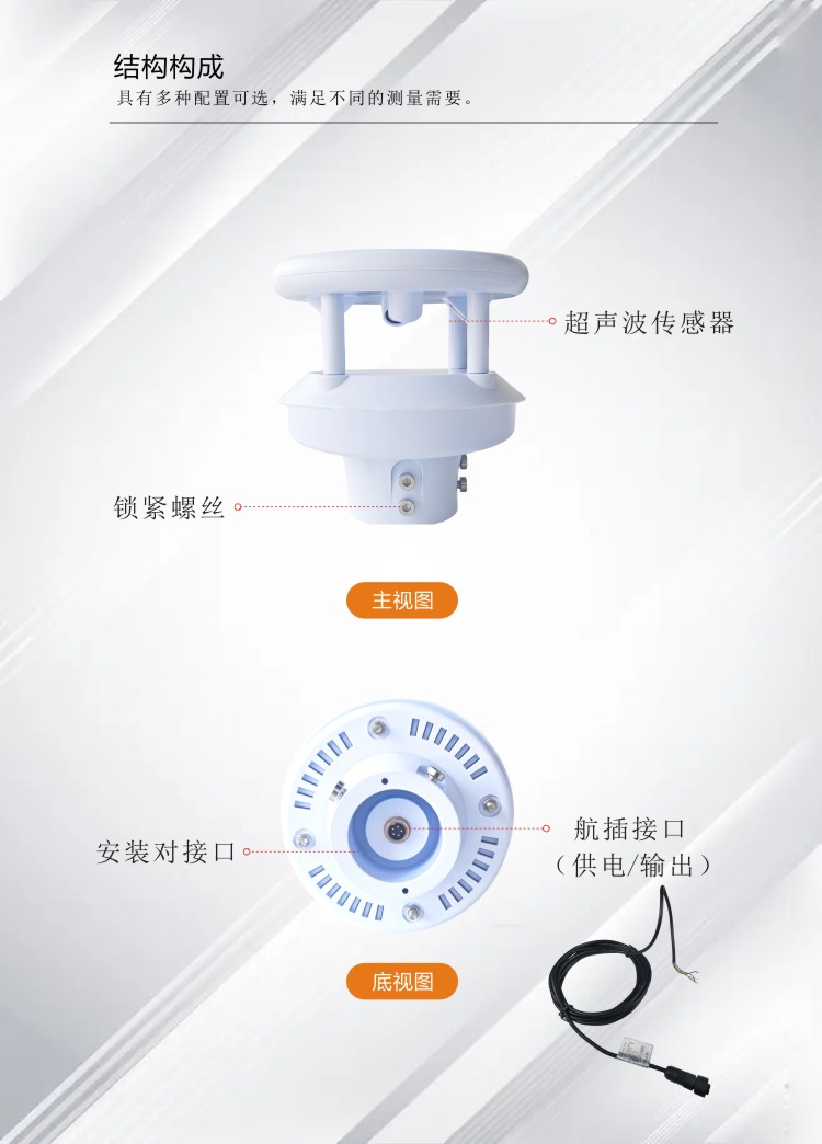●原理为发射连续变频超声波信号,通过测量相对相位来检测风速风向;